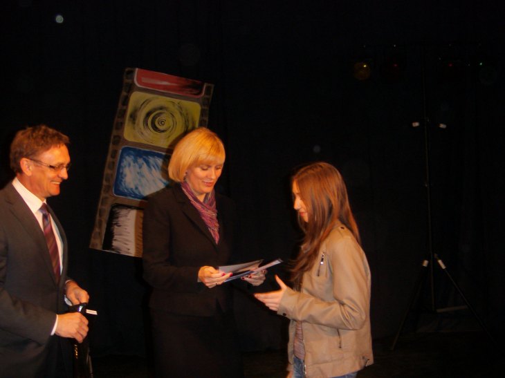 Konkursu Fotograficznego „ Światło wieczorową porą". W konkursie ogłoszonym przez MDK wzięło udział 103 uczestników z 27 placówek oświatowych i kulturalnych z terenu całej Polski. Łącznie zgłoszono 294 fotogramy. Nagrody i dyplomy wręczali wiceprezydent miasta Pabianic pani Małgorzata Biegajło oraz Starosta Pabianicki pan Krzysztof Habura. W kategorii wiekowej do lat 16, 2 miejsce zajęła uczennica naszego gimnazjum Katarzyna Gronowska z klasy 3h. Kasia zgłosiła do konkursu trzy fotografie, wszystkie przedstawiające zachód słońca. Kasi w obiorze nagrody, towarzyszyła mama i nauczycielka plastyki pani Beata Debich, która zgłosiła prace fotograficzne do konkursu. To duże osiągnięcie, zajęcie 2 miejsca w konkursie ogólnopolskim. Serdecznie gratulujemy. |