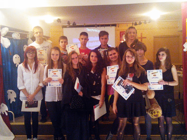 opiekunem była p. Sylwia Pelizg. W przedstawieniu udział wzięli: Agnieszka Mackiewicz 2c Marta Romanowicz 2c Karolina Skrobiszewska 2c Justyna Karczmarz 2c Magdalena Śmiech 2c Maksymilian Kowalski 2c Natalia Goryjowska 2c Aleksandra Parafiniuk 2c Krystian Paszkiewicz 2c Michał Rybicki 3h Mateusz Michalak 3h Serdeczne podziękowania za odwagę i ogromne zaangażowanie. Na prezentacje zaproszone zostały klasy 1g, 1e,1h, 2b, 2c, 3a, 3f. Pierwsza część przedstawienia zaprezentowała obyczaje i kulturę w Wielkiej Brytanii, zaś druga była częścią rozrywkową. Widownia wzięła udział w quizie o Wielkiej Brytanii, a następnie prezenterzy zaprosili widownie do udziału w konkursach. Wszyscy bawili się doskonale. |