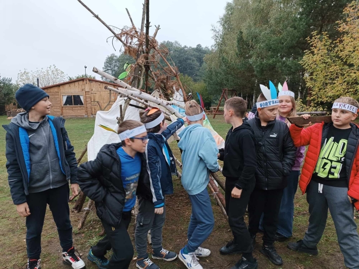 indiańskie namioty – tipi. Posileni pieczoną kiełbaską, z dużym