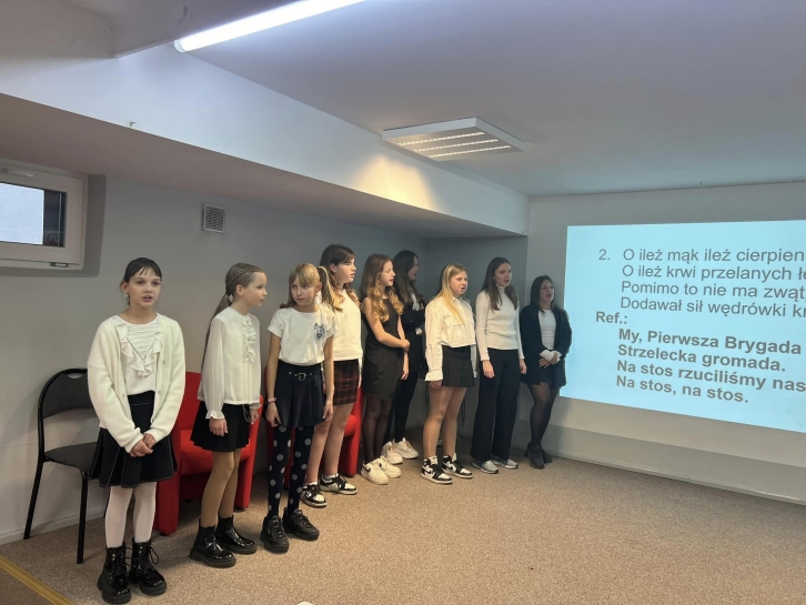 PATRIOTYCZNY PROGRAM SŁOWNO - MUZYCZNY Z okazji Narodowego Święta Niepodległości uczniowie klas IV-VIII uczestniczyli w programie słowno-muzycznym. Prowadzący przypomnieli wszystkim trudną drogę Polski do odzyskania niepodległości. Był też czas na wspólne śpiewanie pieśni patriotycznych. |