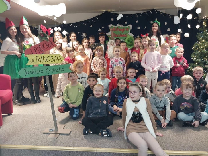 W przedstawieniu zagrali nasi zdolni uczniowie. 05 grudnia na scenie wystąpili dla przedszkolaków, a 6 grudnia zagrali dla uczniów uczęszczających do świetlicy szkolnej. Mieszkańcy Ktosiowa z niecierpliwością oczekiwali Świąt Bożego Narodzenia, najpiękniejszego czasu w roku. Ale na górskim szczycie, w ciemnej jaskini mieszkał ON...zielony, złośliwy stwór GRINCH, ktory nie znosi Świąt Bożego Narodzenia i zrobi wszystko, by je zepsuć. Postanawia więc zepsuć święta mieszkańcom leżącego w pobliżu miasteczka...Czy mu się to uda? Czy napotkana mała, radosna dziewczynka roztopi serce stwora i sprawi, że Grinch pokocha święta? Zobaczcie sami. |