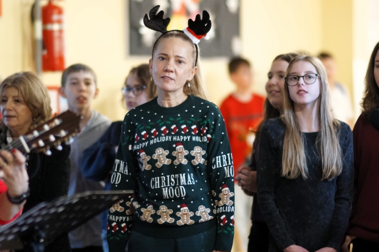 nauczyciele, którzy wspólnie śpiewali najpiękniejsze kolędy